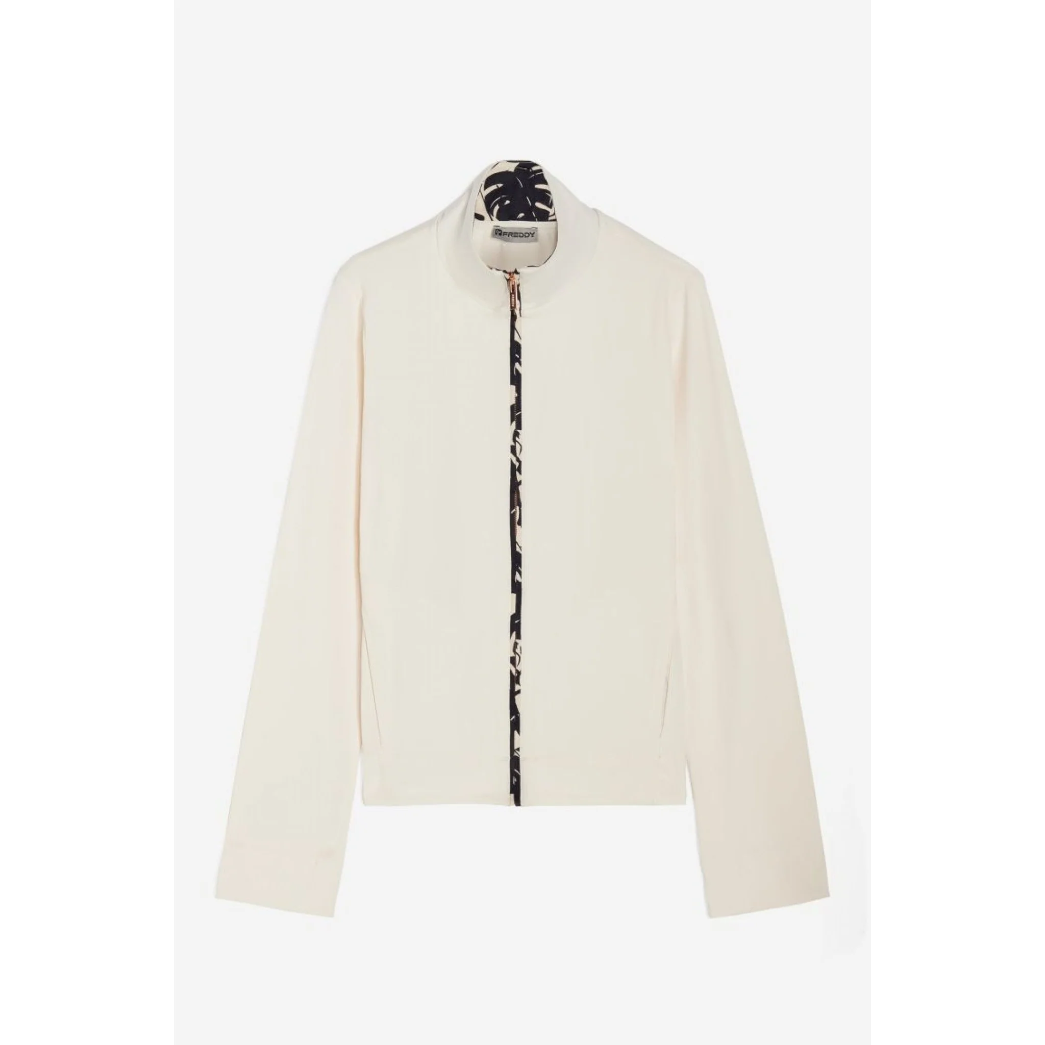 – chiusura full zip con bordatura stampa tropical